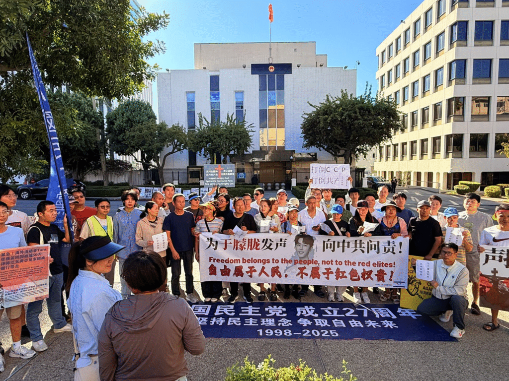 2025年9月20日下午4点,中国民主党在洛杉矶中领馆前举行第756次茉莉花行动。本次活动的主题是“为于莽龙发声,追责中共”。